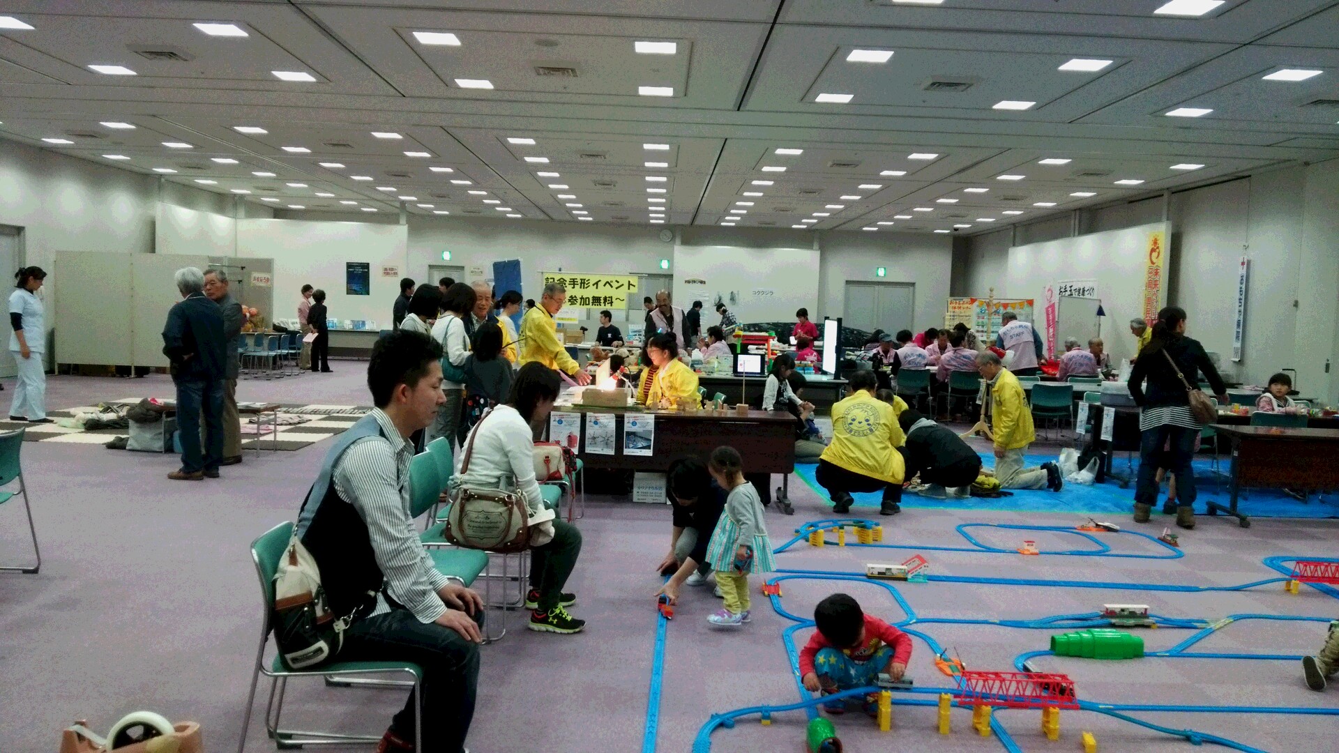 目の前にこんなおもちゃのレールが敷かれ、子供たちは夢中になって遊びます。
