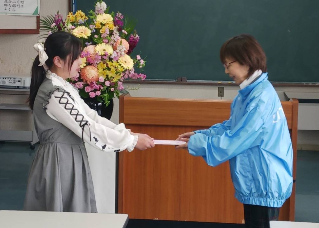 2025年12月20日(土)高原町並木公民館にて高原町ジュニアコーラス主催による「ふれあいコンサート」がチャリティーを目的に開催されました。その時の入場料の一部8,685円が高原町ジュニアコーラスの代表より宮崎県ユニセフ協会兼城事務局長に贈呈されました。